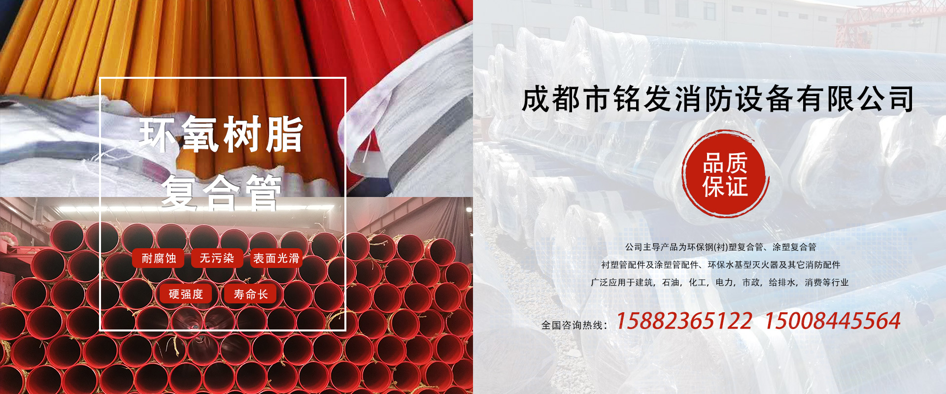 成都市銘發(fā)消防設備有限公司主導產品為環(huán)保鋼(襯)塑復合管、涂塑復合管、襯塑管配件及涂塑管配件、環(huán)保水基型滅火器及其它消防配件。廣泛應用于建筑、石油、化工、電力、市政、給排水、消防等行業。...